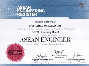 Registered ASEAN Engineers, (ASEAN.Eng. in Industrial Engineering) with The ASEAN Federation of Engineering Organisations (AFEO) Registration No.: 10131
