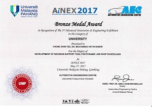 Bronze Medal Award, Decision Support Tool for Dynamic Job Shop Scheduling, Advanced Innovation & engineering Exhibition (AiNEX-2017)