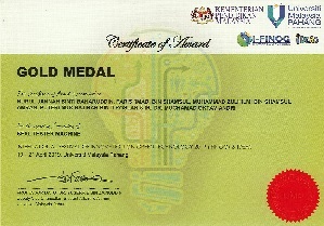 Gold Medal, "Seal Strength Tester Machine", International Festival of Innovation on Green Technology, Creativity and Ideas (I-FINOG-2019)