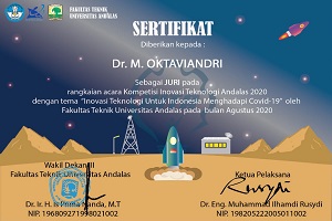 Panel, "Lomba Karya Inovasi Nasional: Kompetisi Inovasi Teknologi Andalas 2020 (KITA2020)" Universitas Andalas, Padang, Indonesia, 2020.