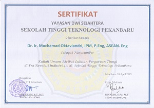 Speaker, "Public Lecture: Atribut Lulusan Perguruan Tinggi di Era Revolusi Industri 4.0", Sekolah Tinggi Teknologi Pekanbaru , Indonesia, 2019.