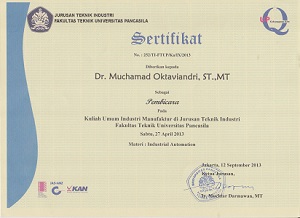 Speaker, "Public Lecture: Industrial Automation", Fakultas Teknik, Universitas Pancasila, Jakarta Indonesia, 2013