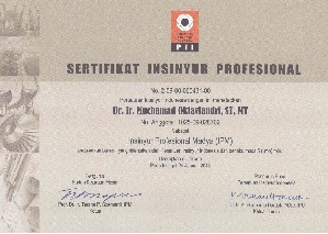 Registered Professional Engineers, (P.Eng. in Mechanical Engineering) with the Badan Kejuruan Teknik Mesin of The Institution of Engineers Indonesia (IEI) Registration No.: 2-09-00-000431-00