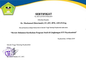 Facilitator, "Curriculum Review: Review Dokumen kurikulum Program Studi di lingkungan STT- Payakumbuh" Sekolah Tinggi Teknologi Payakumbuh, Indonesia, 2019.