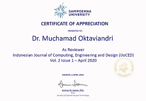 Reviewer, Indonesian Journal of Computing, Engineering and Design (IJoCED) Vol 2 Issue 1 2020.
