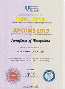 Reviewer, 2nd International Manufacturing Engineering Conference 2015 (iMEC-2015). 2015 |