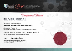 Silver Medal Award, Visitor Management System, Creation, Innovation, Technology & Research Exposition (CITREx-2018)