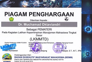 Speaker, "Training: Latihan Kepemimpinan Manajemen Mahasiswa Tingkat Dasar", Fakultas Teknologi Industri, Universitas Bung Hatta, Padang, Indonesia, 2019.