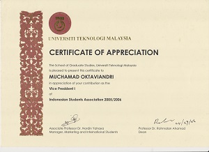 Vice President, Persatuan Pelajar Indonesia (PII) @ Universiti Teknologi Malaysia, 2005-2006