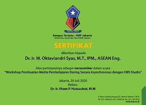 Speaker, "Online Workshop: Pembuatan Media Pembelajaran Daring Asynchronous dengan OBS Studio", Institut Ilmu Sosial dan Ilmu Politik, Jakarta, Indonesia, 2020.