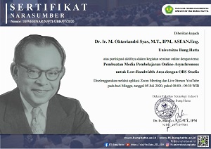 Speaker, "Webinar Nasional: Pembuatan Media Pembelajaran Online-Asynchronous untuk Low-Bandwidth Area dengan OBS Studio", Zoom ID: 937 3805 7695, 2020.