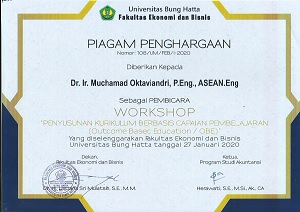 Speaker, “Workshop: Rekonstruksi Kurikulum Berbasis OBE untuk memfasilitasi program MBKM di Prodi Akutansi”, Fakultas Ekonomi dan Bisnis, Universitas Bung Hatta, Padang, Indonesia, 2021.