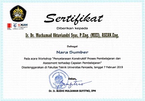 Speaker, "Workshop: Penyelarasan Konstruktif Proses Pembelajaran dan Asesmen terhadap Capaian Pembelajaran", Fakultas Teknik, Universitas Pancasila, Jakarta, Indonesia, 2019.