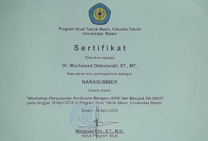 Speaker, "Workshop: Penyusunan Kurikulum yang Mengacu SN-DIKTI dan Merujuk KKNI", Fakultas Teknik, Universitas Batam, Indonesia, 2016.