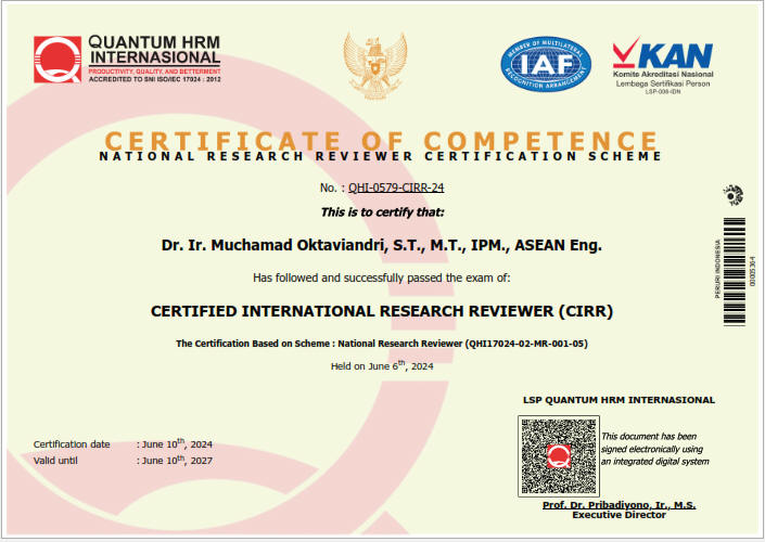 Member, The Institution of Engineers Indonesia (IEI), Membership No.: 1025.09.028702