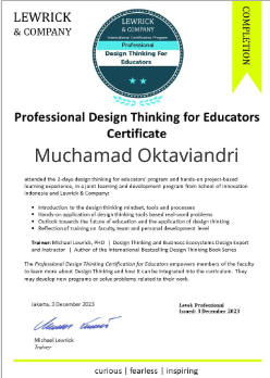 Certified Design Thinking – Professional Level, by The Lewrick and Company, International Certification Program (3rd Dec. 2023). |